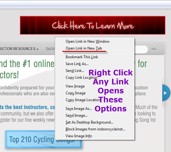 Whenever you want to click a link, and retain the page you are currently viewing - Right Click the link and you will see your choice of options. Note: Might be slightly different depending on what version of Windows you are running. MAC users see something similar.